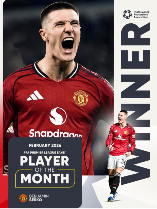吧3月10日讯 PFA(英格兰职业球员工会)宣布,曼联前锋舍什科当选球迷票选英超2月最佳球员。